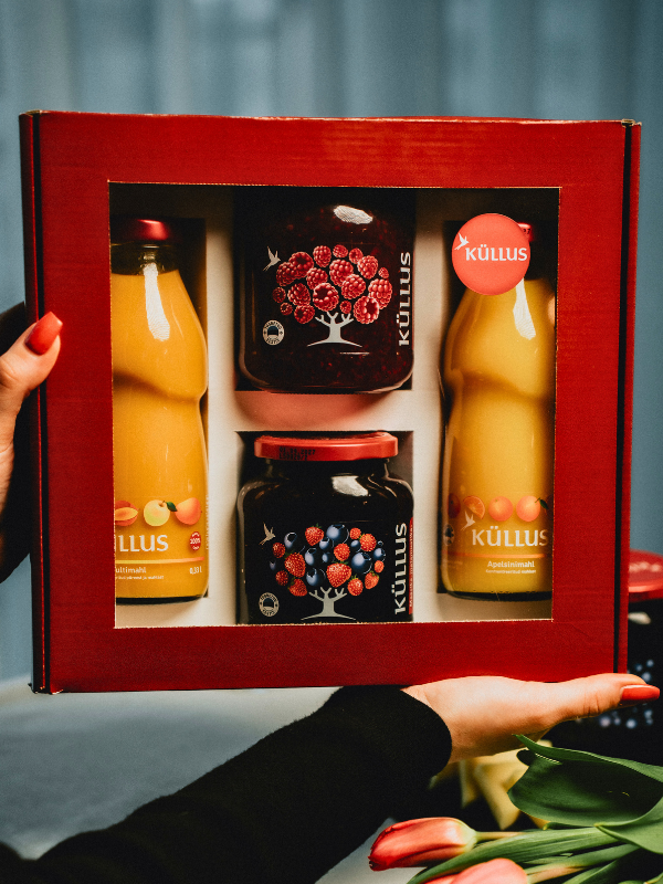 - Elegantselt pakendatud karp sisaldab hoolikalt valitud kodumaiseid tooteid, mis pärit puhtast loodusest ning valmistatud hoole ja armastusega.